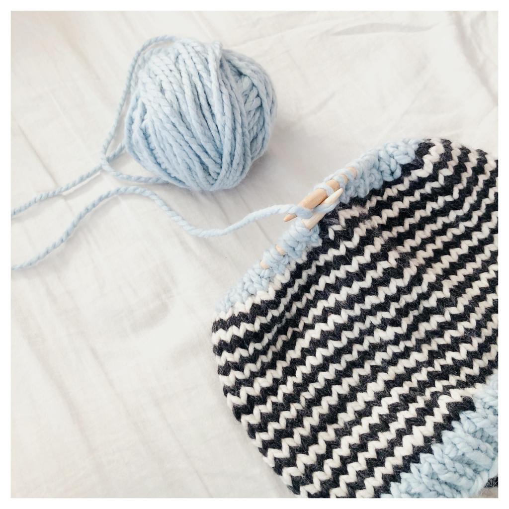 The Rachel Hat is a beginner friendly striped hat knit with three colors. It’s perfect for everyday wear, market prep, and gift knitting. It is knit seamlessly with a chevron-esque pattern and works up quickly.