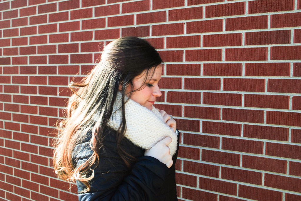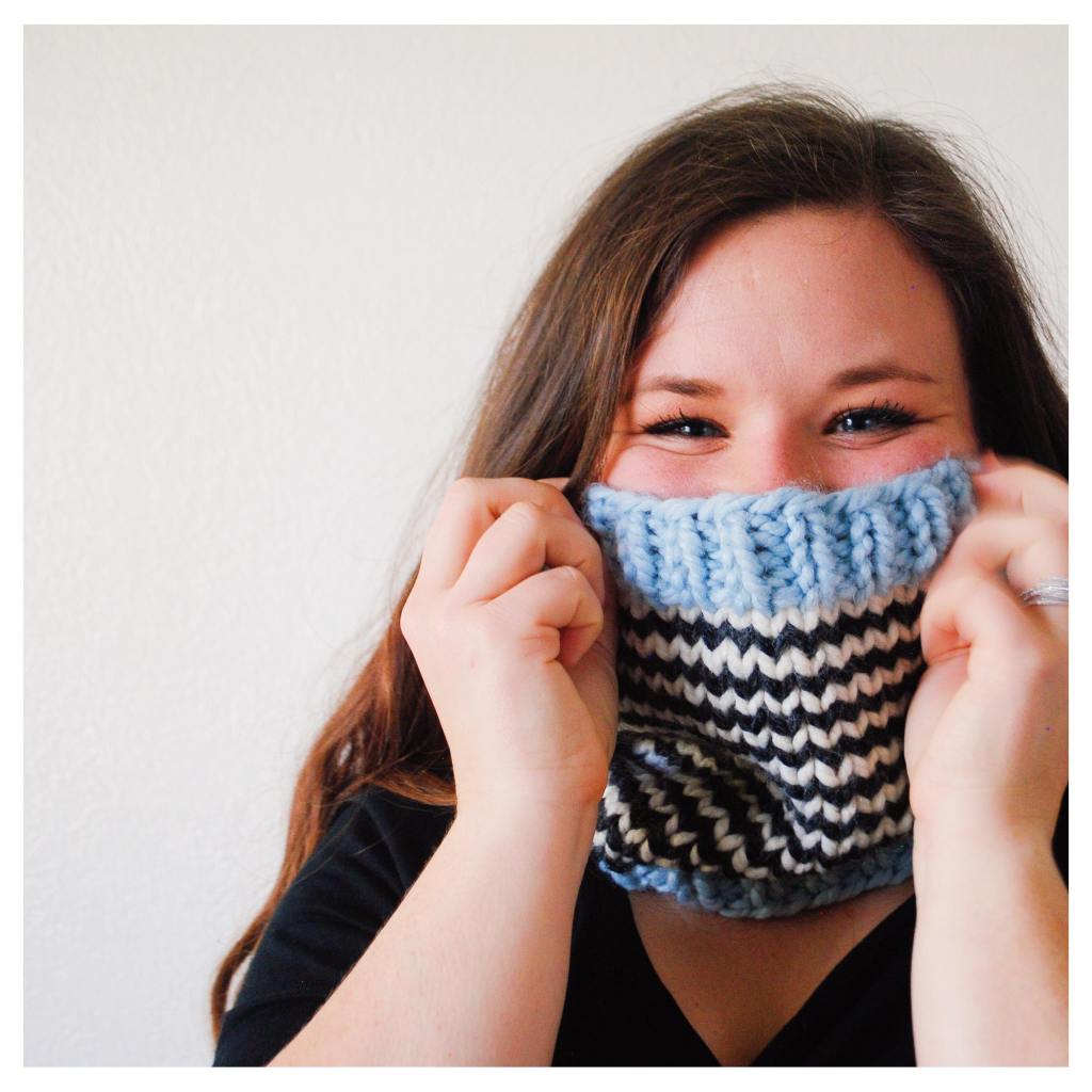 This scarf was almost entirely inspired by the beautiful cloud-like yarn I used for it. I’ve always loved Red Heart Hyyge because it is so soft, so cozy, and also surprisingly lightweight. When knit with the right stitches, it’s just so squishy! I love the Sydney Scarf for the frigid winter days here in Colorado- it’s perfect for skiing, sledding, really anything you’ll do in the snow and freezing temps. But I’ve also wanted a scarf that can just keep me warm on the cold days, that I can also wear throughout my day in my chilly office. And that’s how the Samantha Scarf was born!