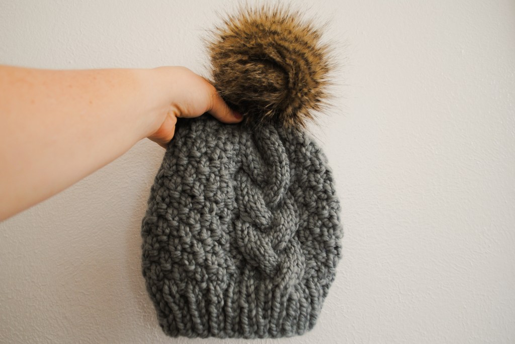 Ever since I started knitting for Etsy and markets I wanted to make a textured hat with a single braided cable. I looked for a pattern using super bulky yarn and couldn’t find one anywhere. When I got a little more comfortable with pattern design, I decided to design the hat I had been looking for for so long!