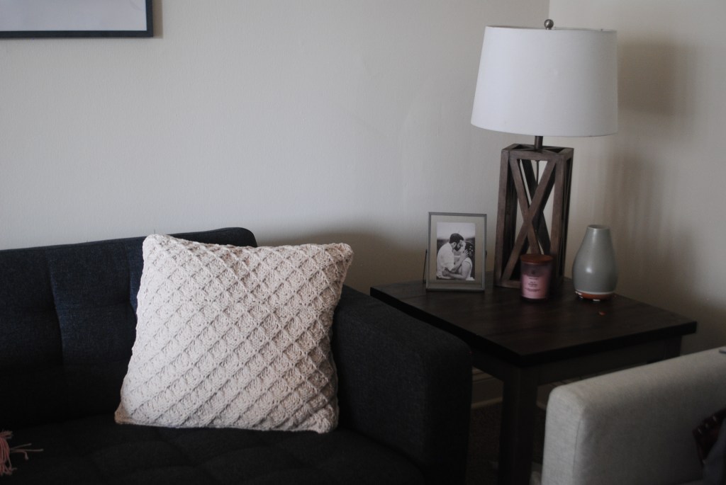 I was wanting a pillow with dreamy texture, soft yarn, and versatile style. The Trellis stitch is just the texture I was looking for, the Big Twist Hush yarn is exactly what I had in mind, and both came together to be the perfect addition to our living room! I’ve even thought about making a couple to throw on our bed and I will definitely be making more as Christmas gifts this year.