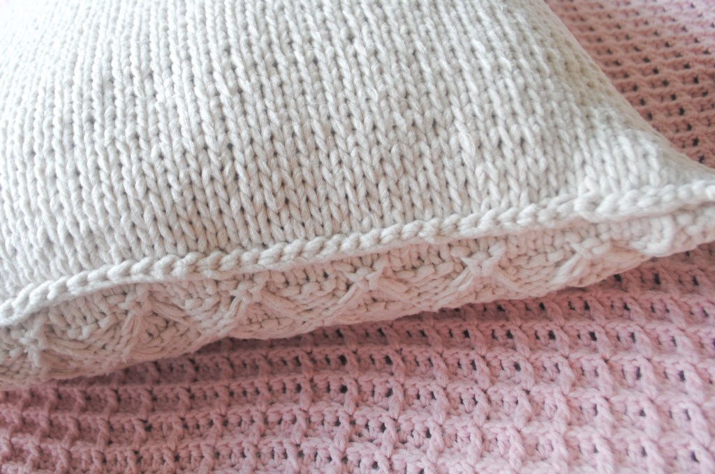 If you want to make some modifications you can easily make two “front” panels for double texture, or just the stockinette “back” side for a simple and timeless pillow.