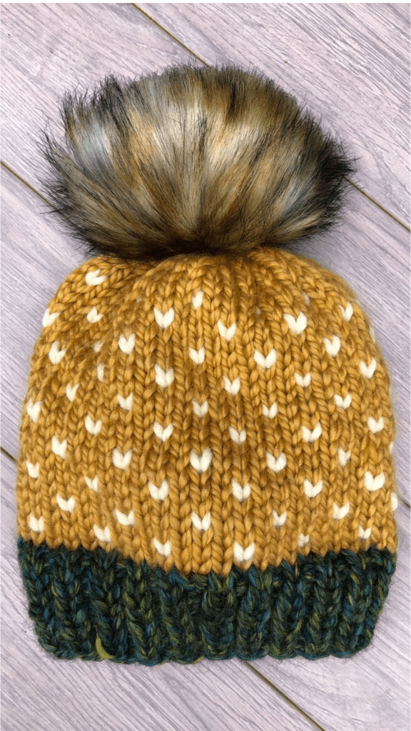 I’ve always loved fair isle hats and the way the stitches look like little hearts. But I wanted a hat that I could make with scraps from my other hats. So I experimented with different colored brims and the Kimberly Hat was born! It uses the perfect amount of yarn and the color work is easy enough to be mindless but also exciting enough to make you want to keep knitting it.